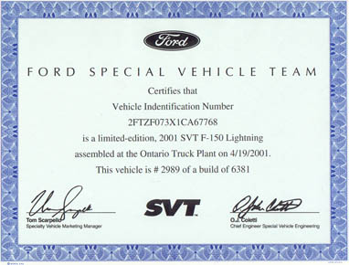 SVT (Ford's Special Vehicle Team) produced 6,381 Lightnings in